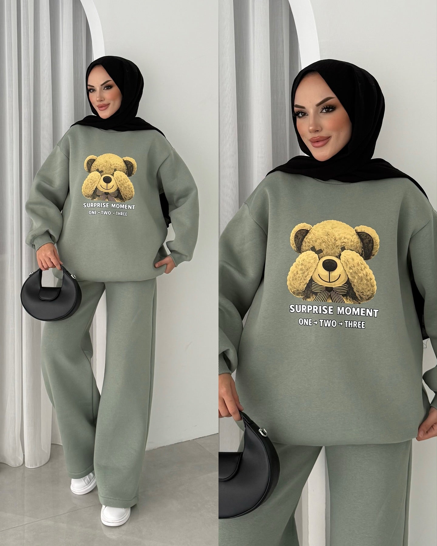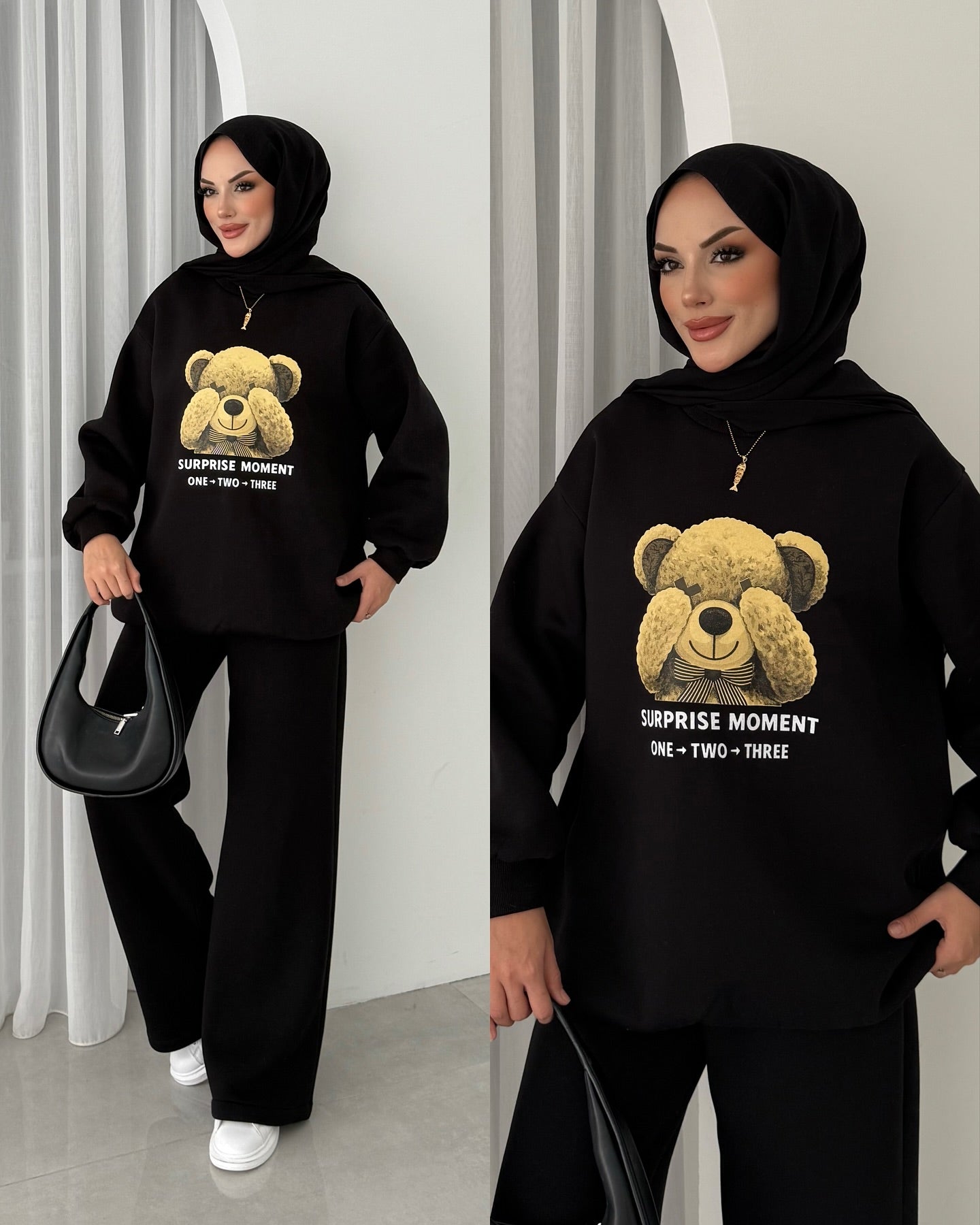 Design Details: Introducing the 'Camilla' fleece co-ord set: your new go-to for oversized comfort and instant cozy style.Perfect for effortless modest dressing, this two-piece features a premium fabric and a charming teddy bear graphic.